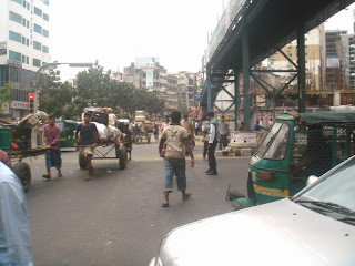 Dhaka is possibly a city in the world to deny pedestrian rights. The pedestrian cannot use sidewalk in the city as they mostly remain under illegal occupation of vendors, extended part of shops and dumping place for construction materials of influential persons. Pedestrians are forced to walk on road instead of sidewalk.